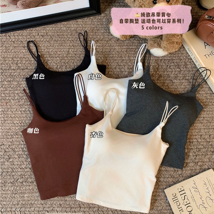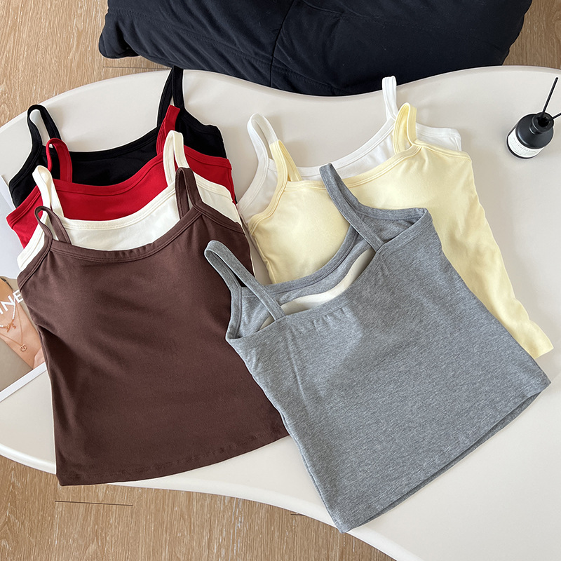 夏用糸入りコットンビューティーバックキャミソール、胸パッド付き、ブラジャーなし、インナーとアウター、着痩せボトムストップ
