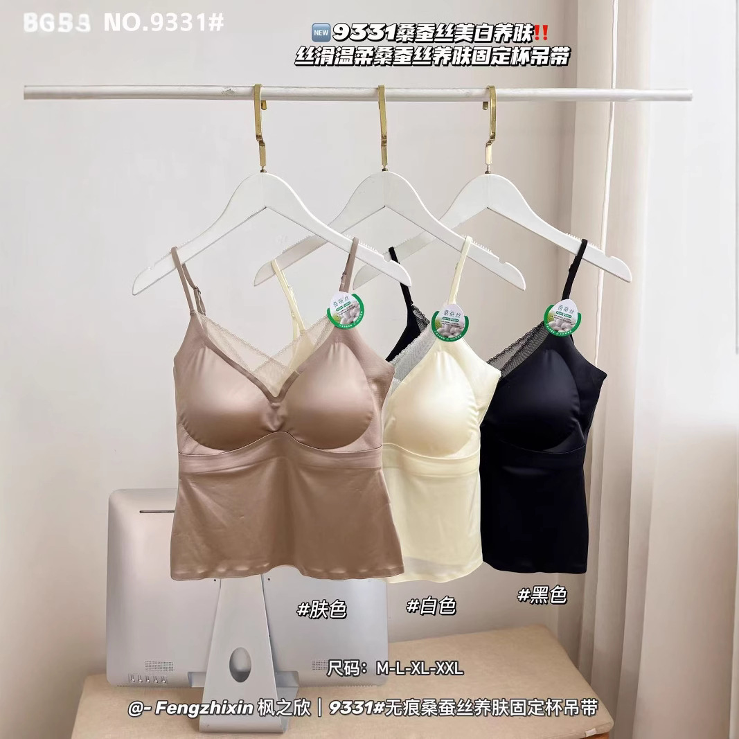 Fengzhixin 9331 マルベリーシルク肌に栄養を与えるシルキー肌に栄養を与える固定カップキャミソール V ネックデザイン快適で多用途