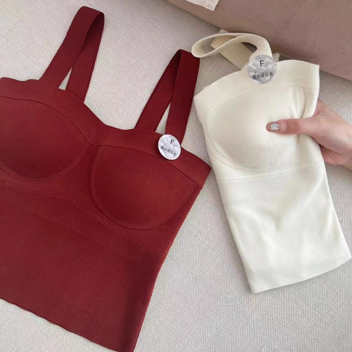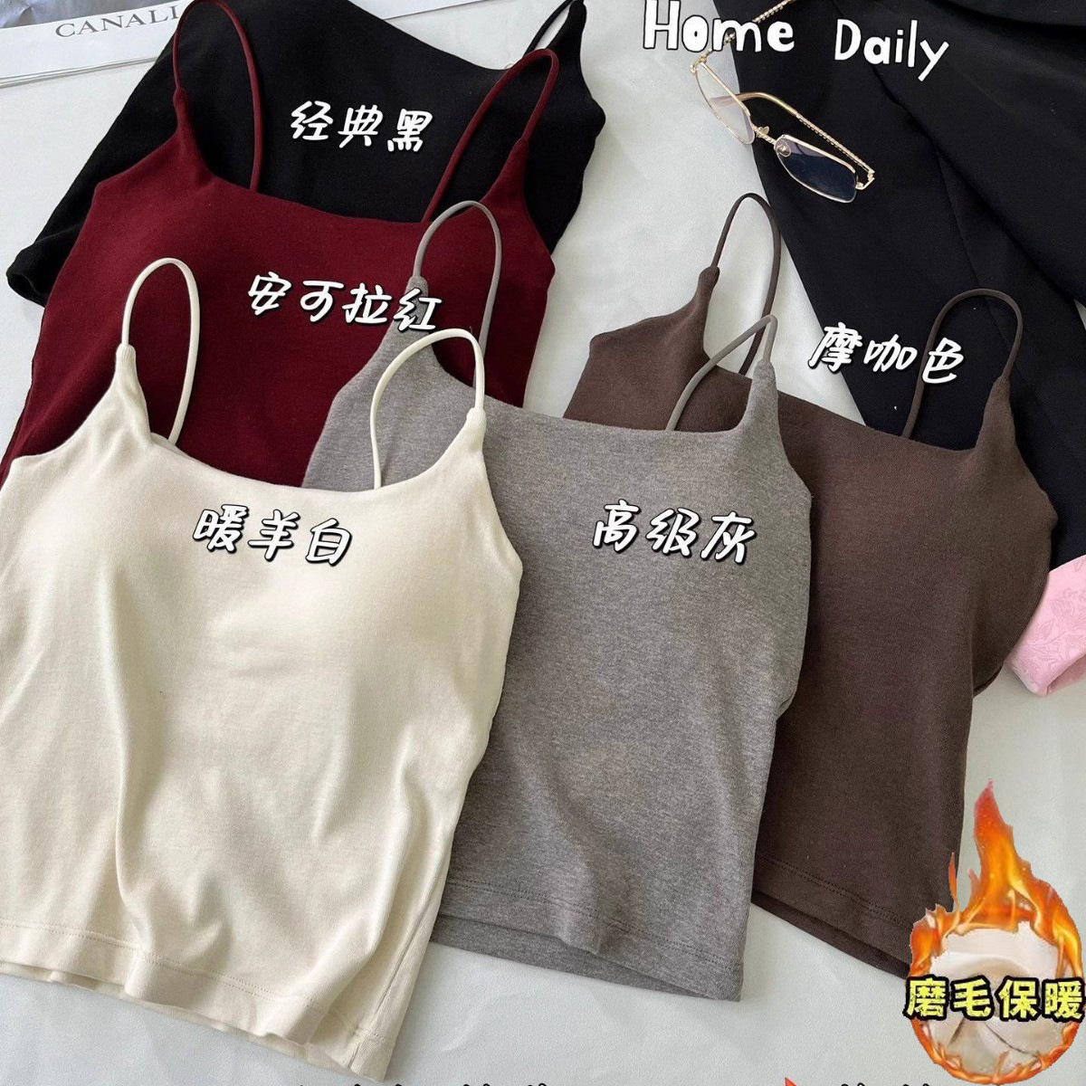6680 # 秋用起毛裏起毛ラテックスカップ入り保温キャミソール レディース スリムフィット ベースレイヤー 外でも着られる万能美背トップス