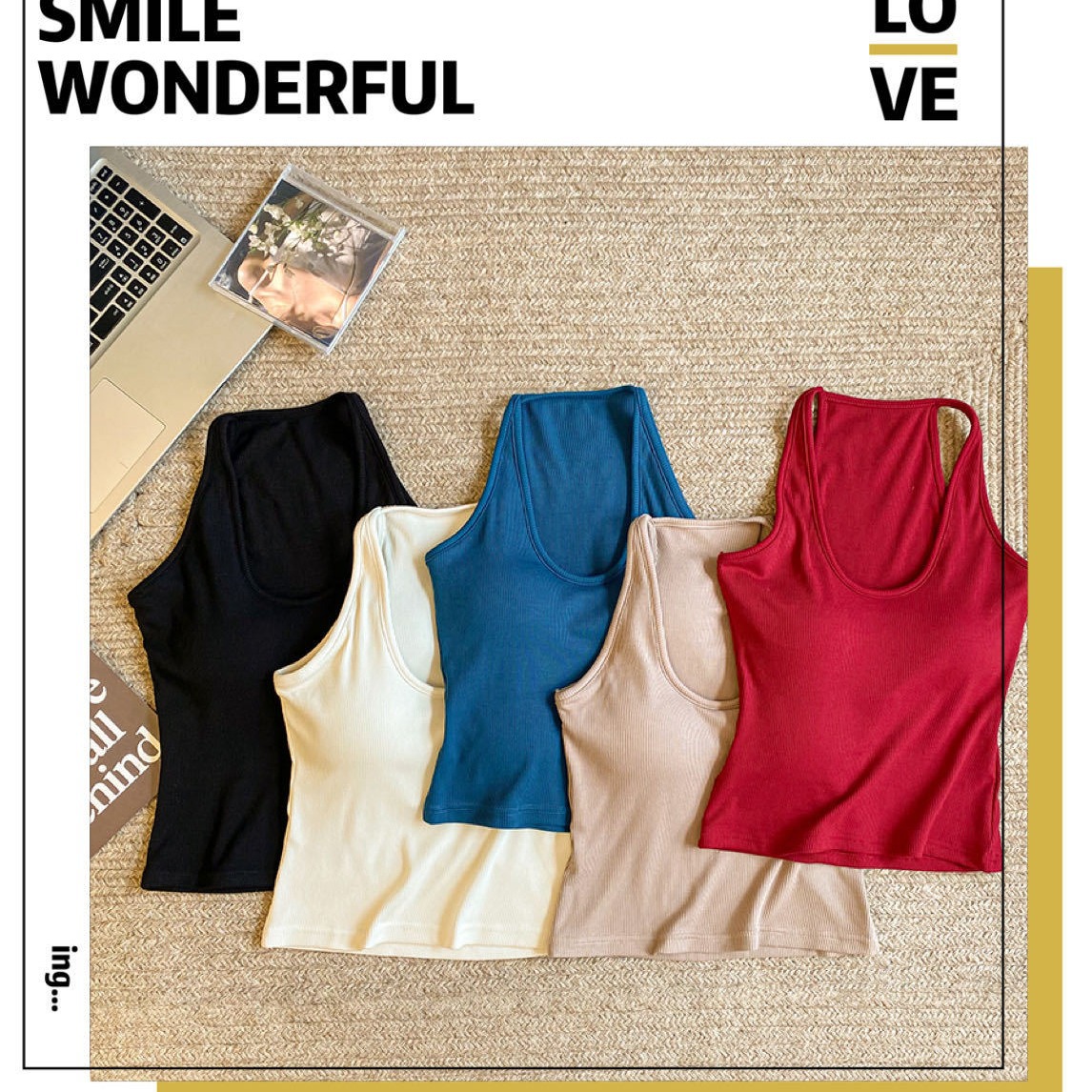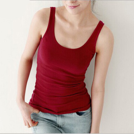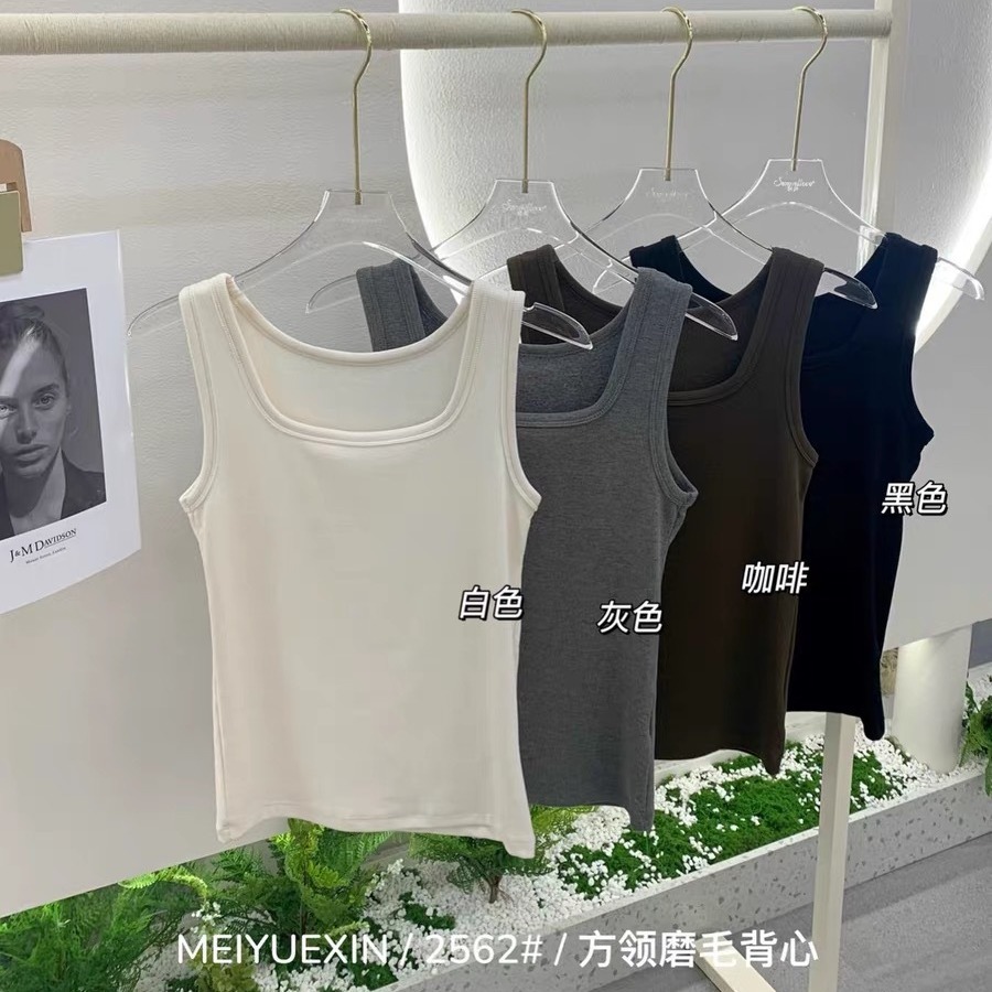 夏の越境新型の綿の方襟のベストの女性の中に胸のパッドをつけて外に身を修める底のシャツの美背の上着を着ます。