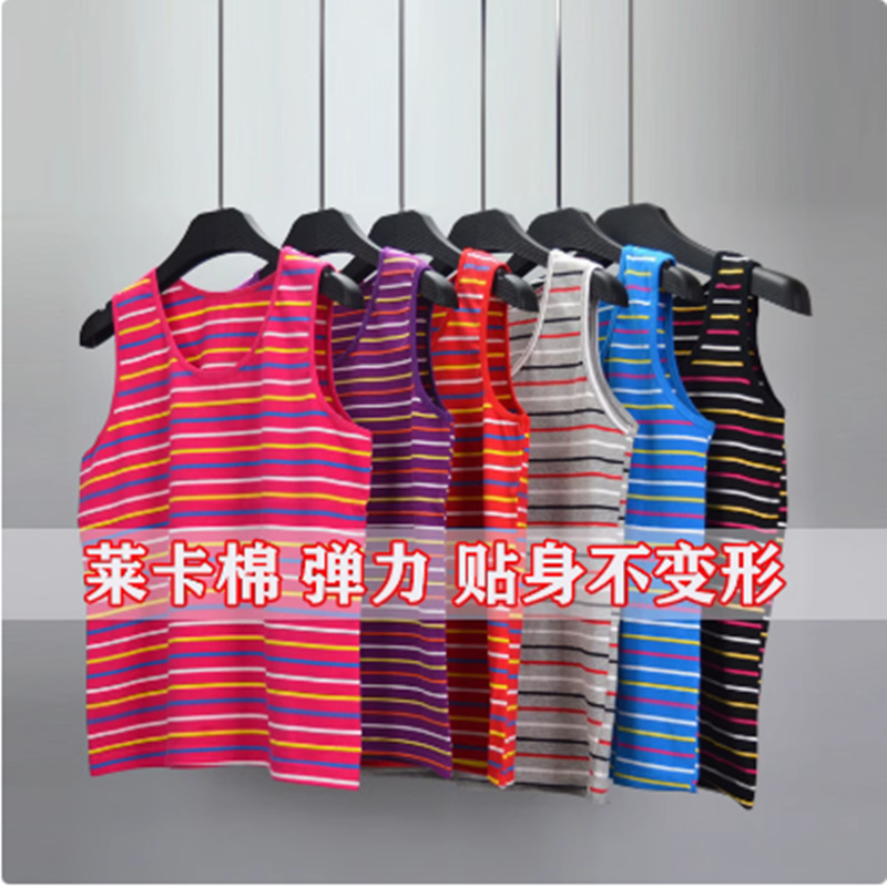 工場卸売レディースカラーストライプベストライクラコットン大きいサイズサスペンダーストライプボトリングシャツ下着女性ストレッチベスト