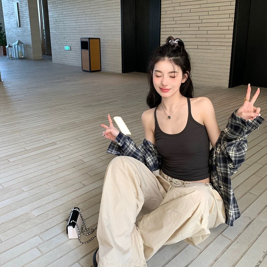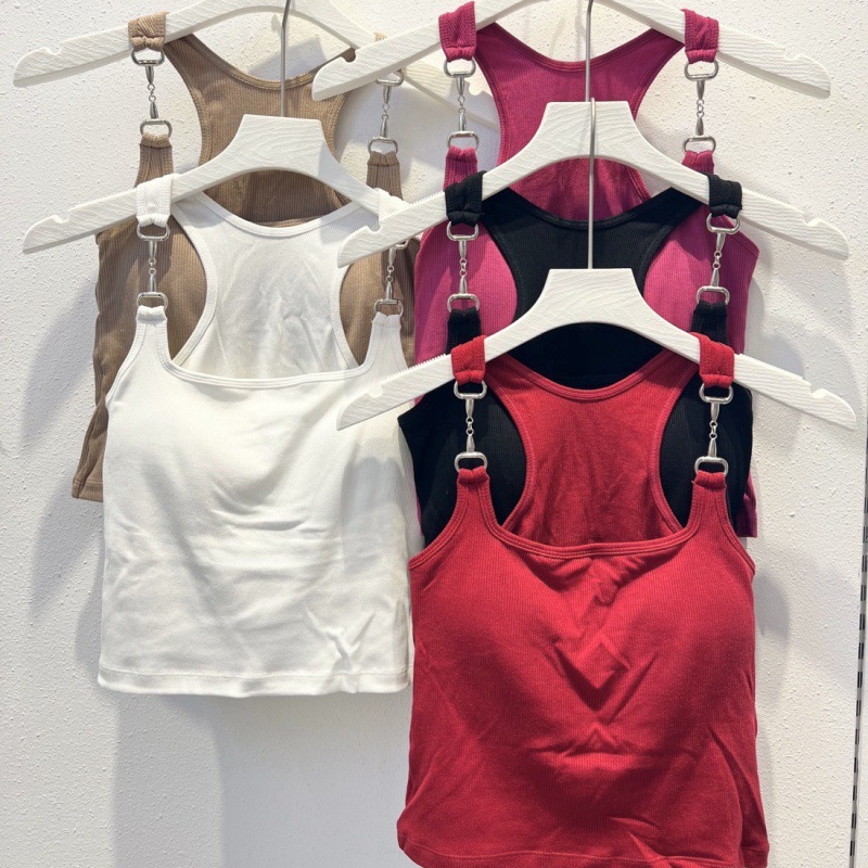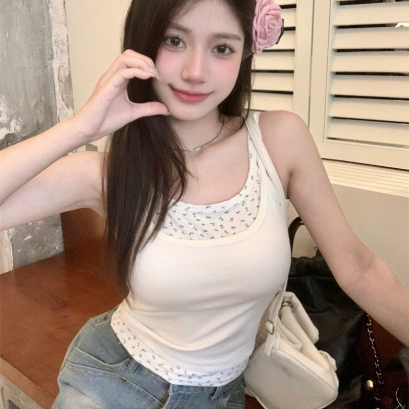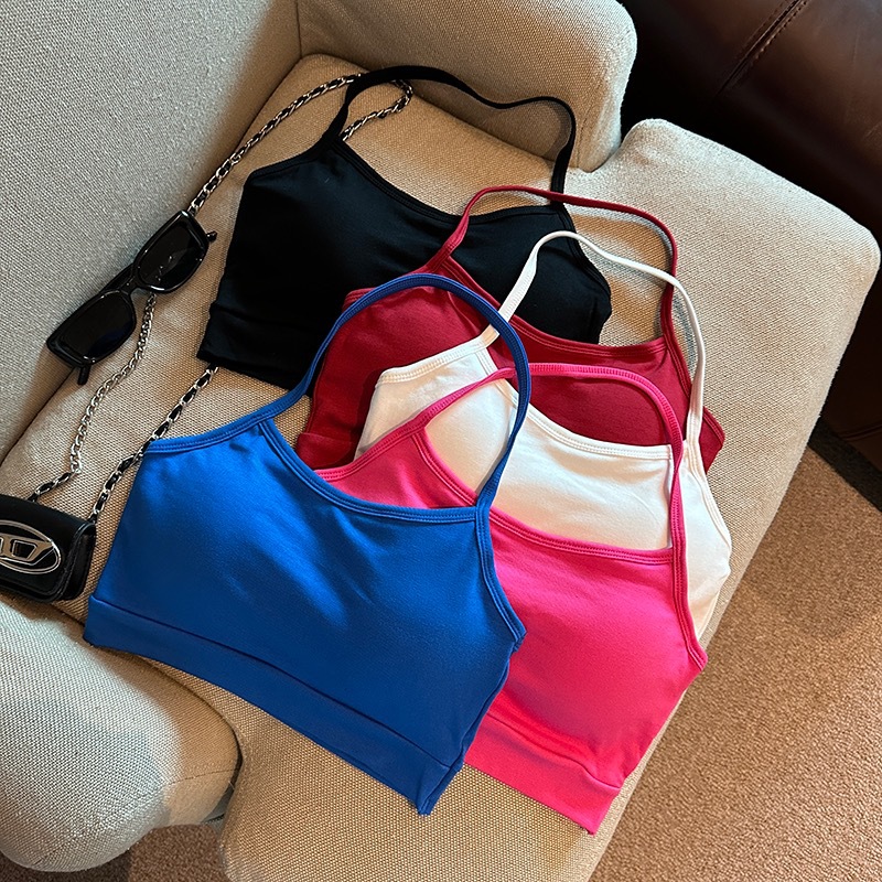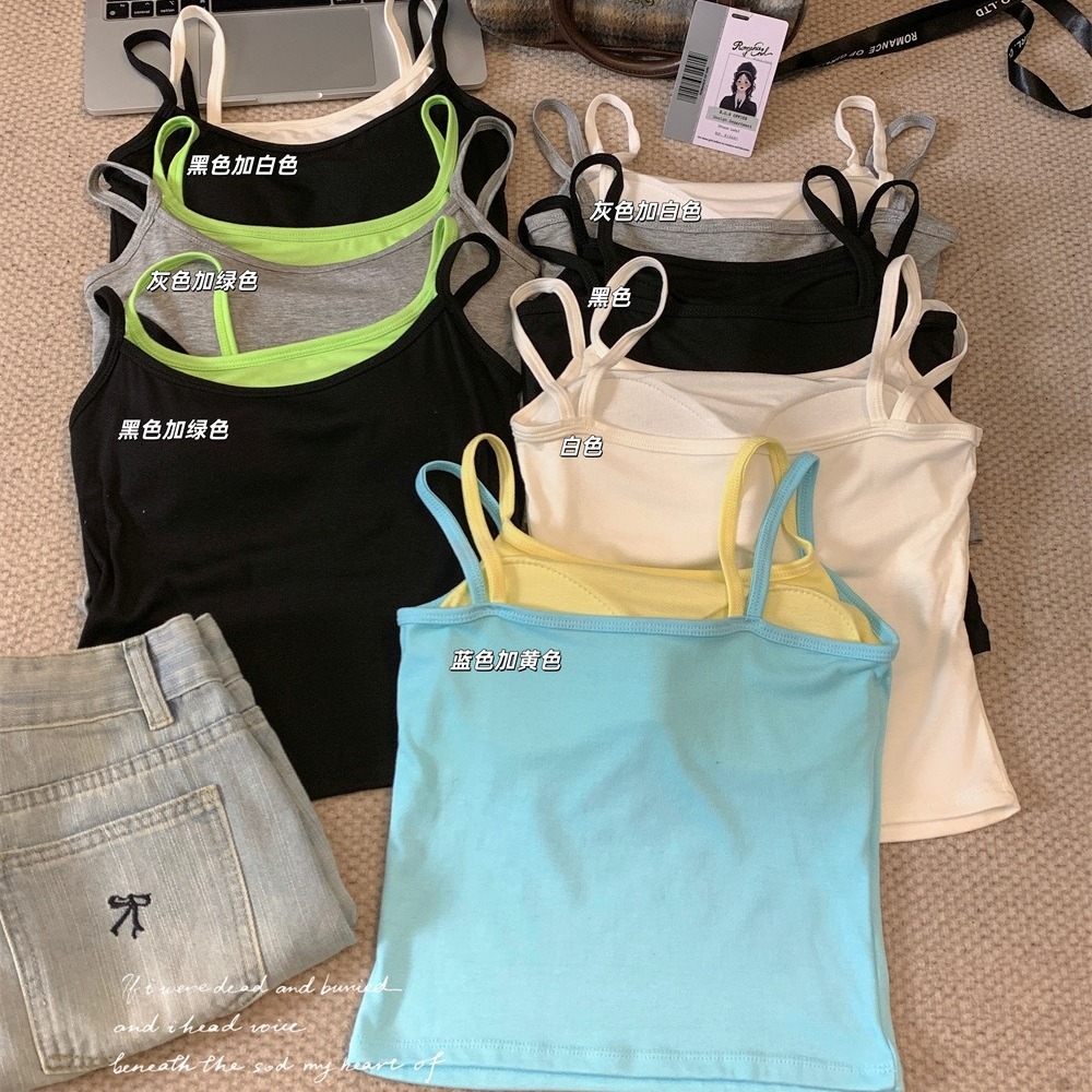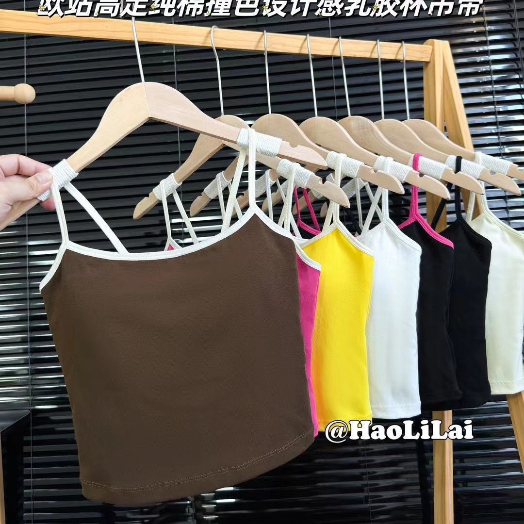 夏のデザイン感純欲風固定胸パッド両肩ベルトベスト女性外着デザイン修身ボトムス