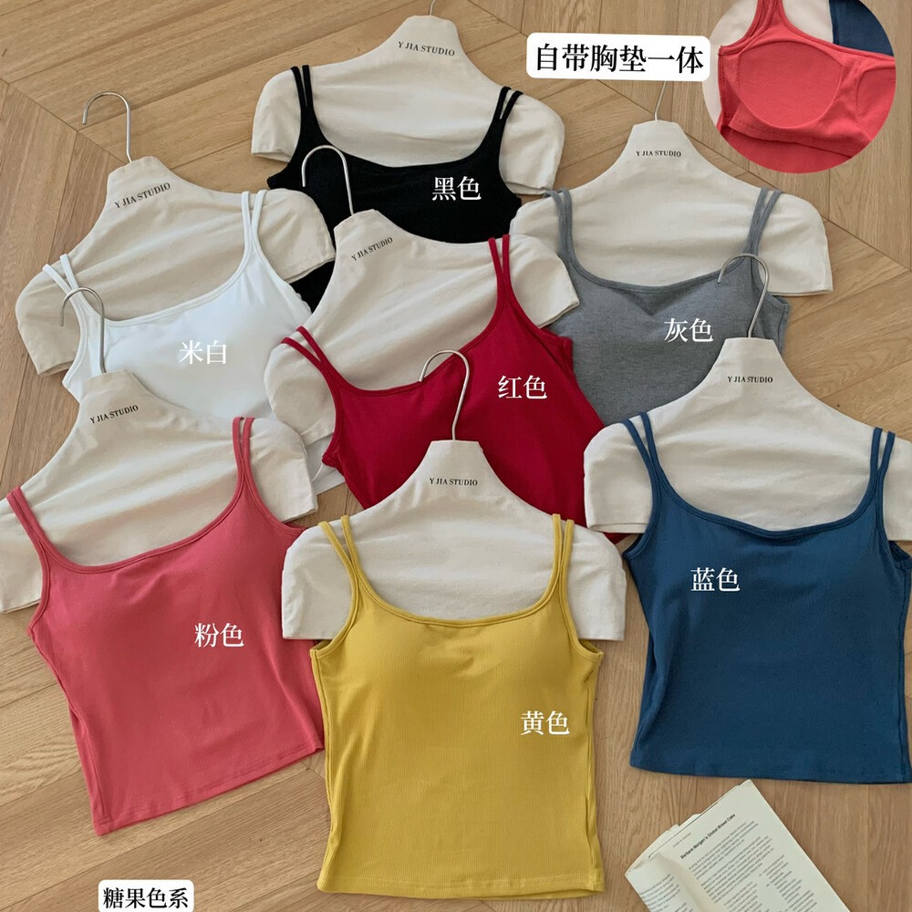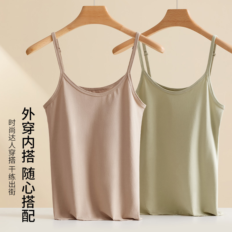 初秋の日焼け止め、痩身、通気性のあるアイスシルクの涼しいキャミソール、胸パッド付き、アンチランニングカップアウターウェア、ホットガールトップ