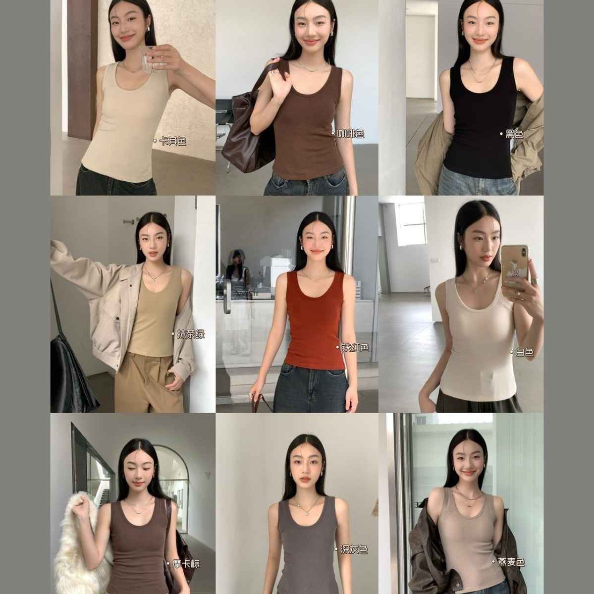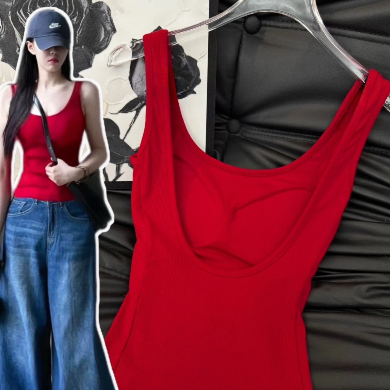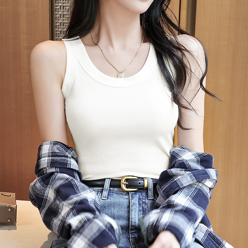 女性のキャミソールの女性の中に2025春夏の新型のネジの中に袖なしの底のシャツを着て身を修めます。