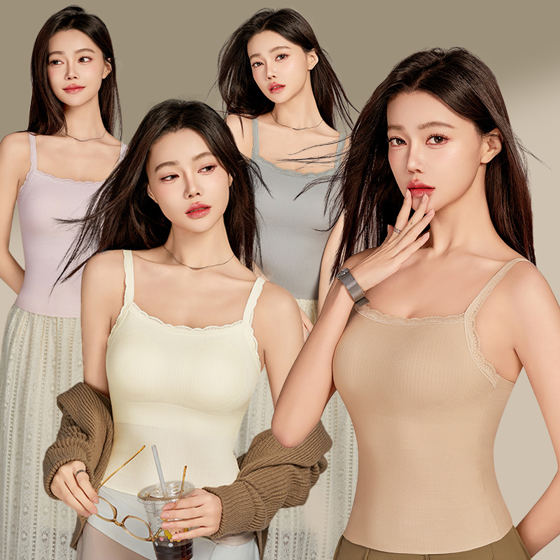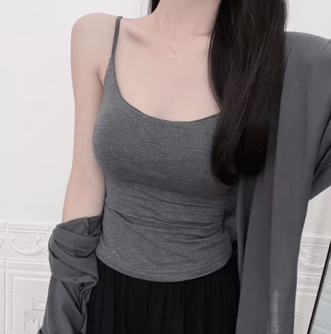 6615純色のシンプルなキャミソールの女性は、胸パッドを持ってカップを固定します。