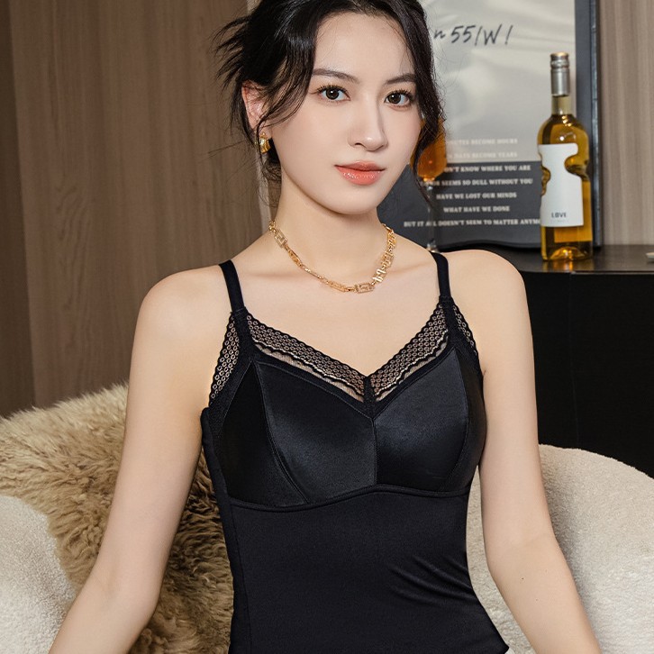 毛磨きとベルベットの肩ひものベスト女性の胸パッド付きの固定カップに保温防寒ベストを装着する