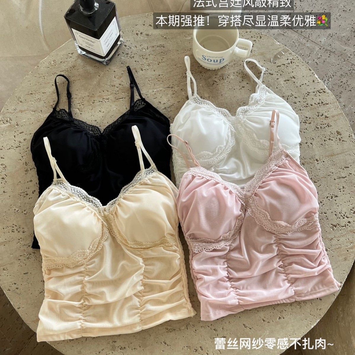 288 # サテンレースのステッチが施されたノンワイヤー、シームレスなキャミソールブラ一体型、プッシュアップ効果のあるセクシーなレースのインナーウェア