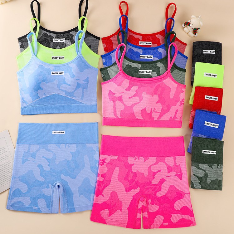 8912-1 # 国境を越えた爆発金シームレス迷彩ストラップ胸美背スーツ女性スポーツパンツアンダーウェア