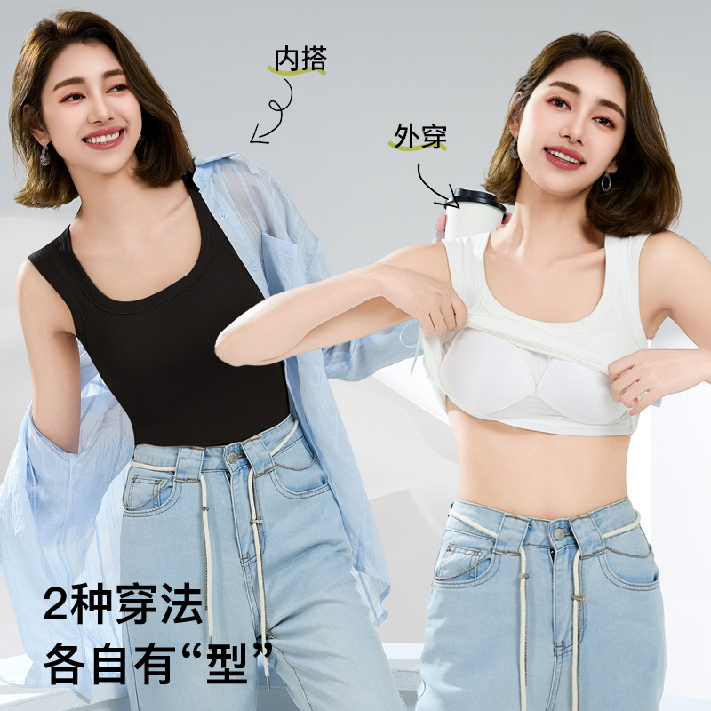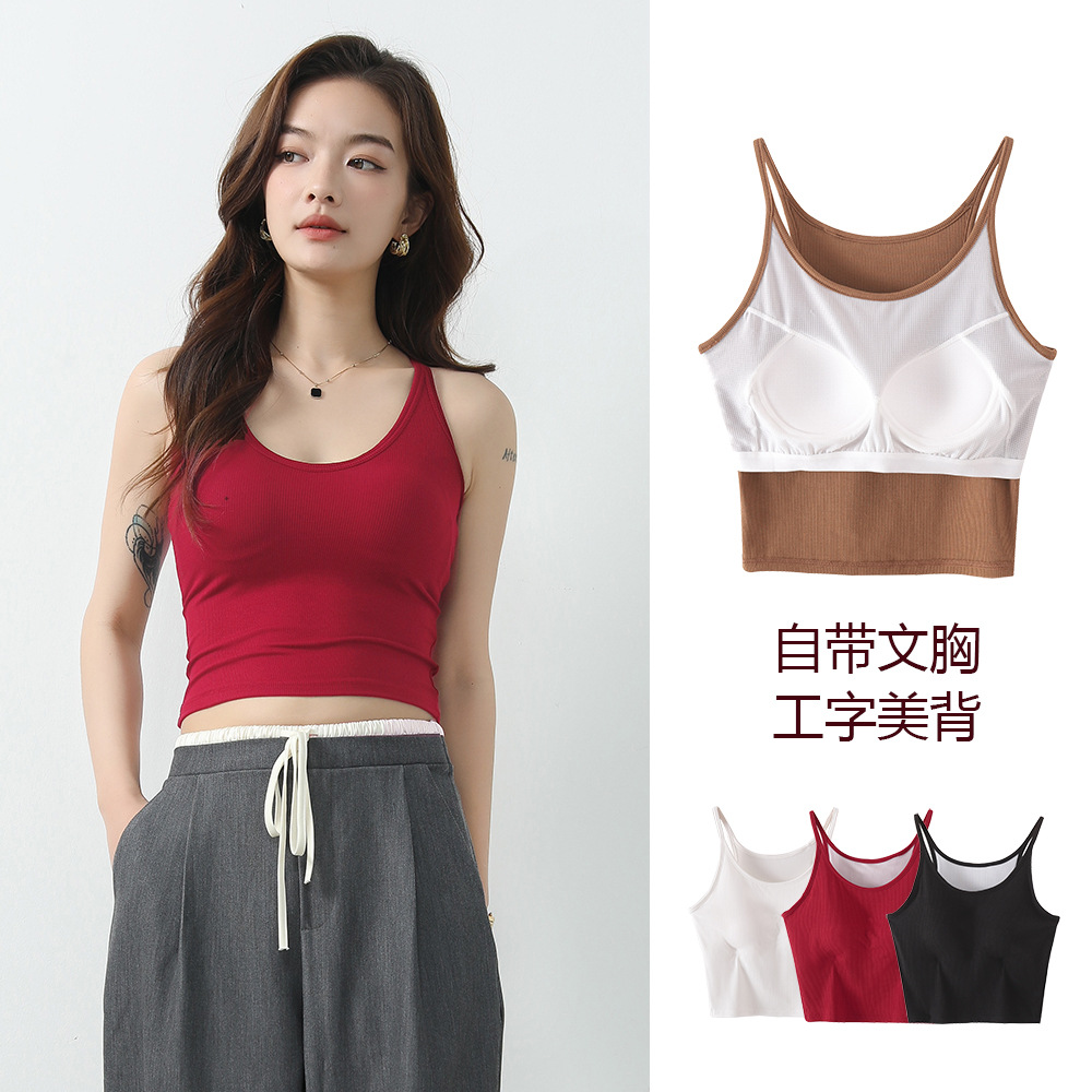 小妖精春夏純欲風美背ストラップベストは胸パッドを持っています。