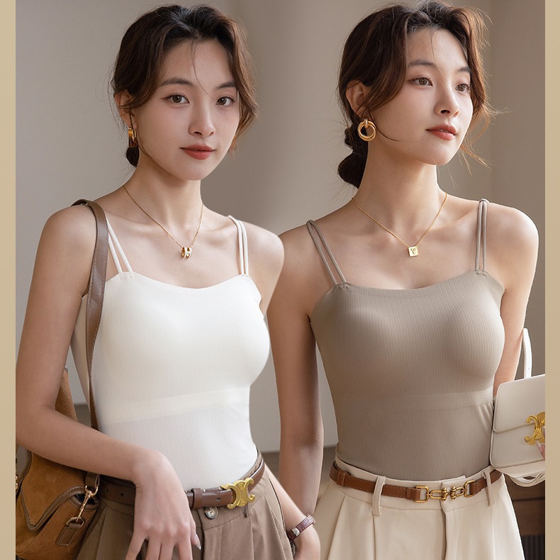 2025新型純色百合胸パッド付き一体杯キャミソール