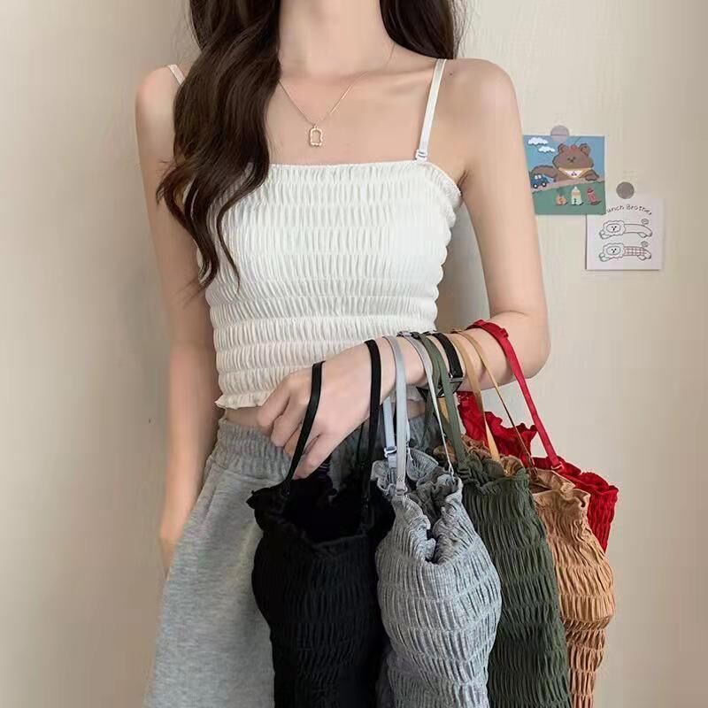 春夏の新型の純欲風は胸のパッドを持っています。胸のパッドを外すことができます。