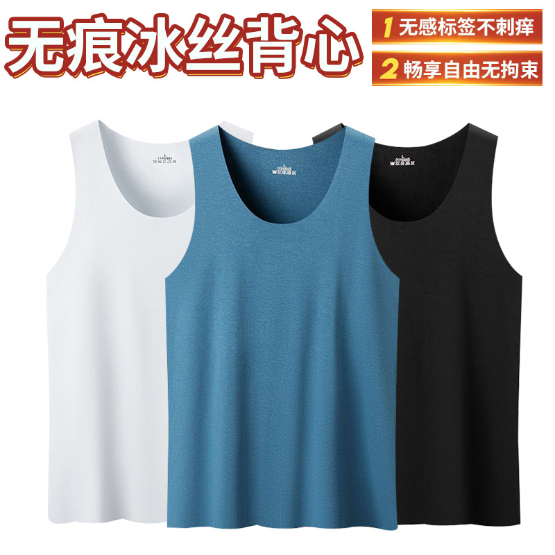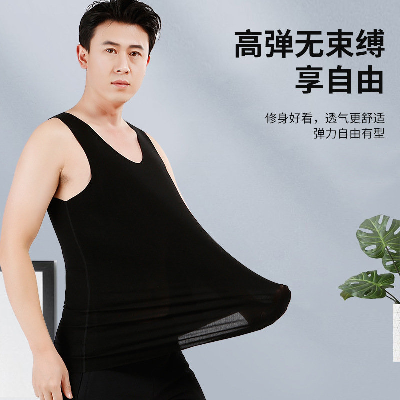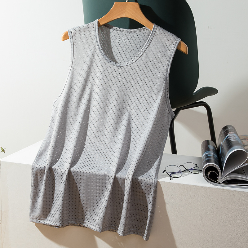 メンズメッシュベストインナーウェアボトムシームレスワイドショルダーベストメンズ夏アイスシルクスポーツハードルホワイトスウェットシャツトレンディ