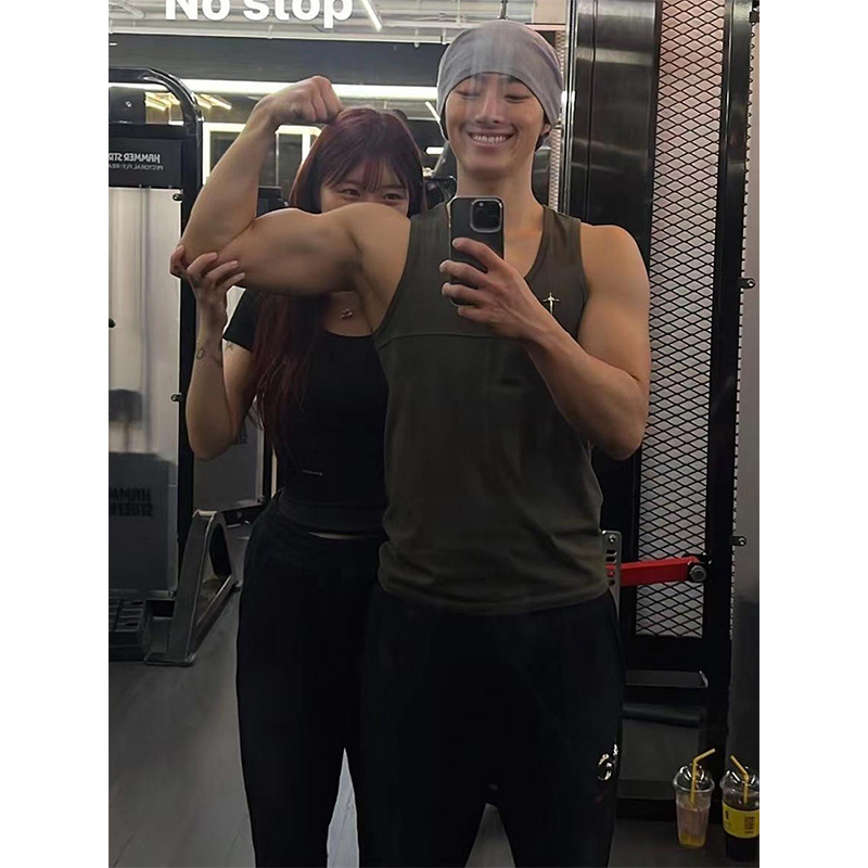 ベスト男性運動速乾袖なしカンカン肩春夏無痕薄金氷糸香港風潮牌吸汗男性ベスト