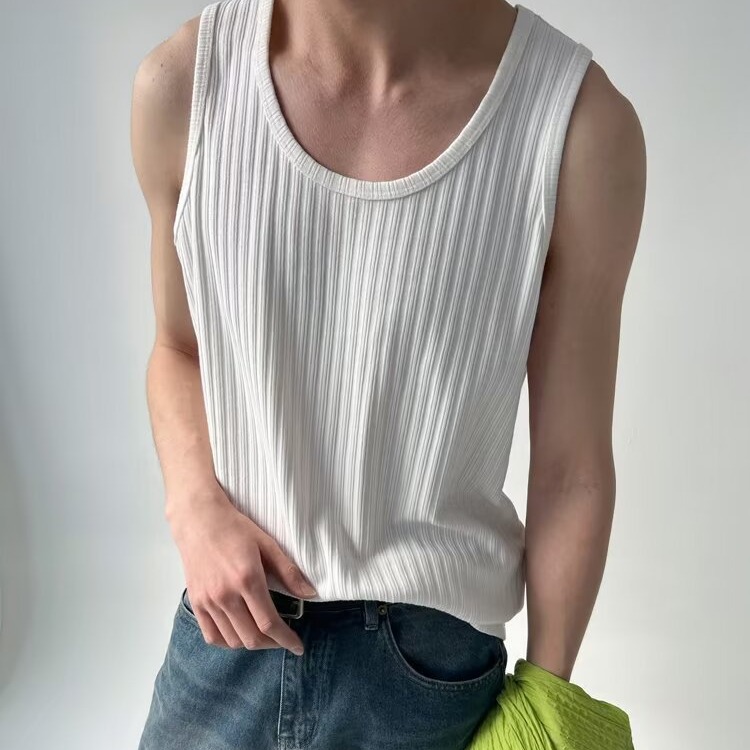 秋兎夏男性モーダルベスト白通気工字ベスト吸汗通気純色底ベスト