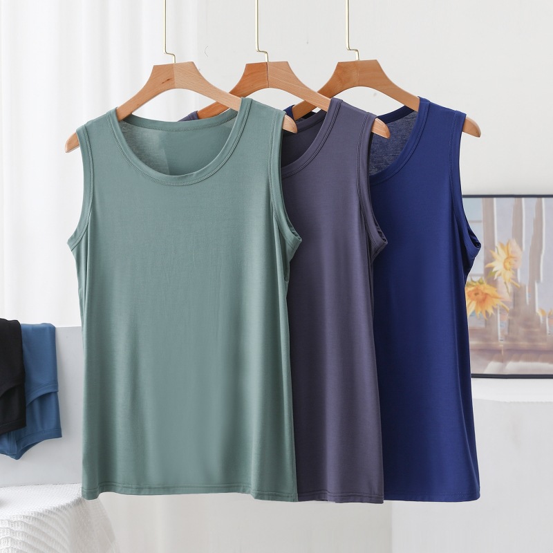 40番手モダールメンズベスト、通気性のあるスポーツフィットネス秋冬用インナーシャツ、ノースリーブ、工場在庫あり