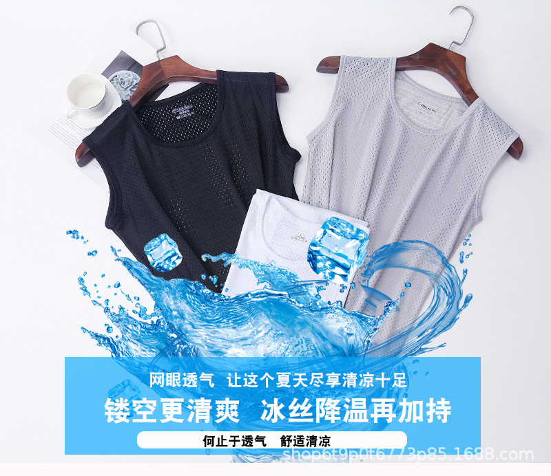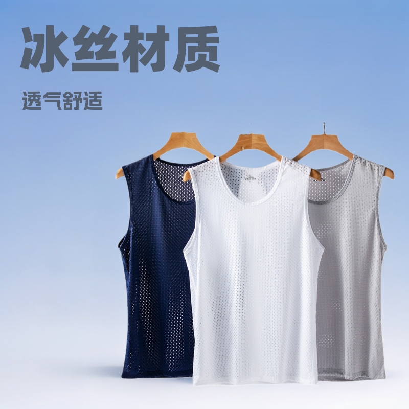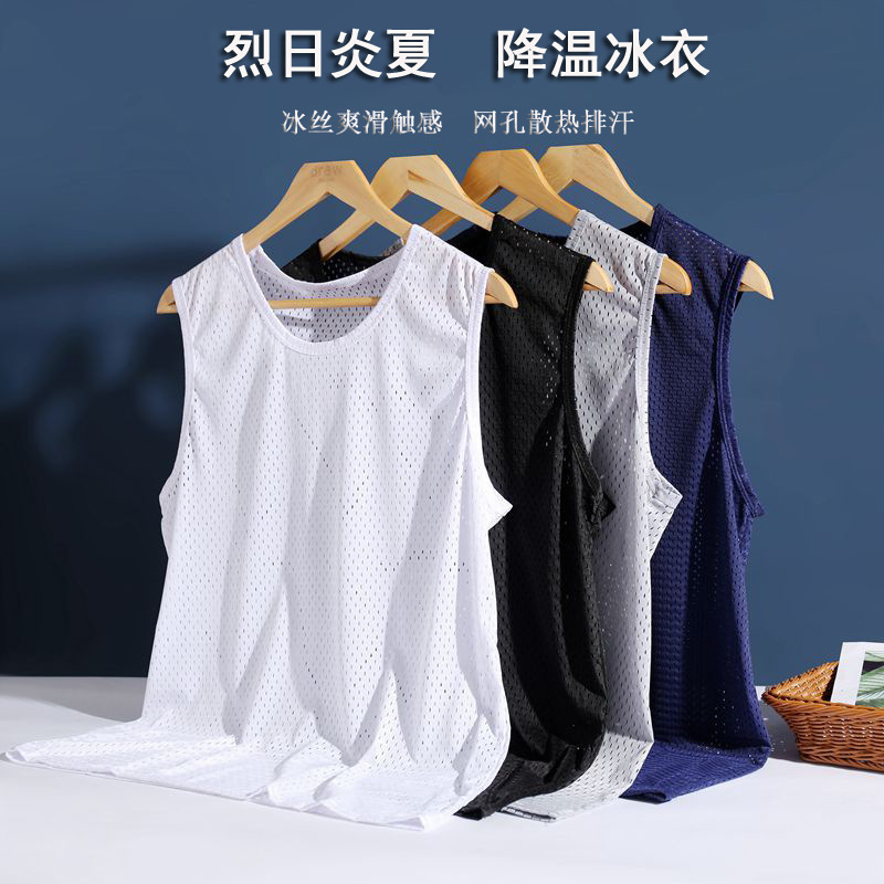 夏の氷糸網眼ベスト男性ワイド肩ノースリーブtシャツ透かし彫り運動通気性大サイズボトムシャツ薄い