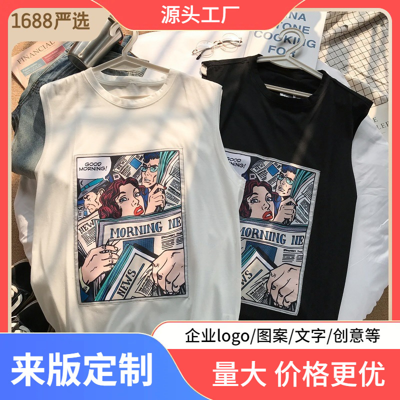 夏の香港風ecゆるいベスト男性ins学生ファッションノースリーブtシャツ丸首カンタンベストスポーツユニフォーム