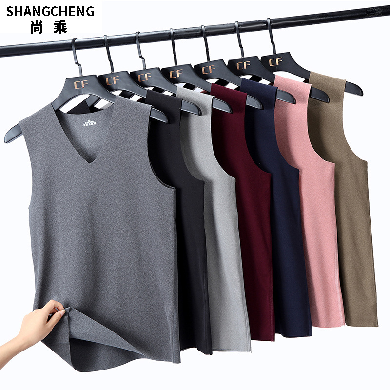 無痕保温ベスト男とベルベットの厚い発熱ガードルの中には、底付きの馬甲を着ている秋冬の両面のベルベットのノースリーブの肩