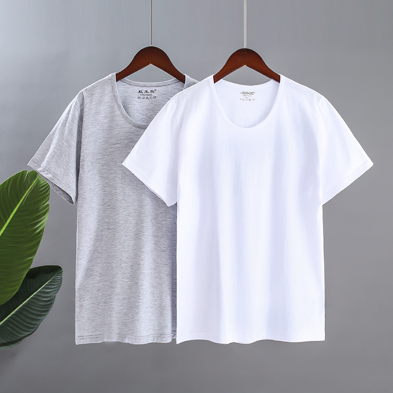 卸売り夏男性綿ライカード半袖tシャツ上着吸汗通気底シャツ純色大サイズゆるい家庭