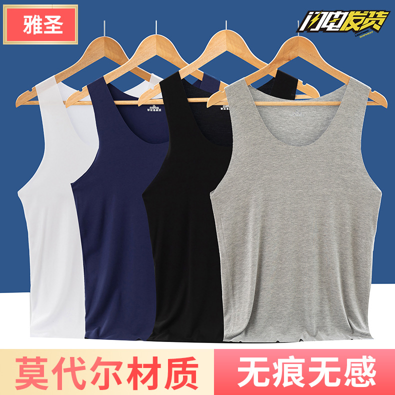 2025m年新作80Sランジンモダールシームレスメンズベスト夏用ノースリーブTシャツフィットネスメンズインナー