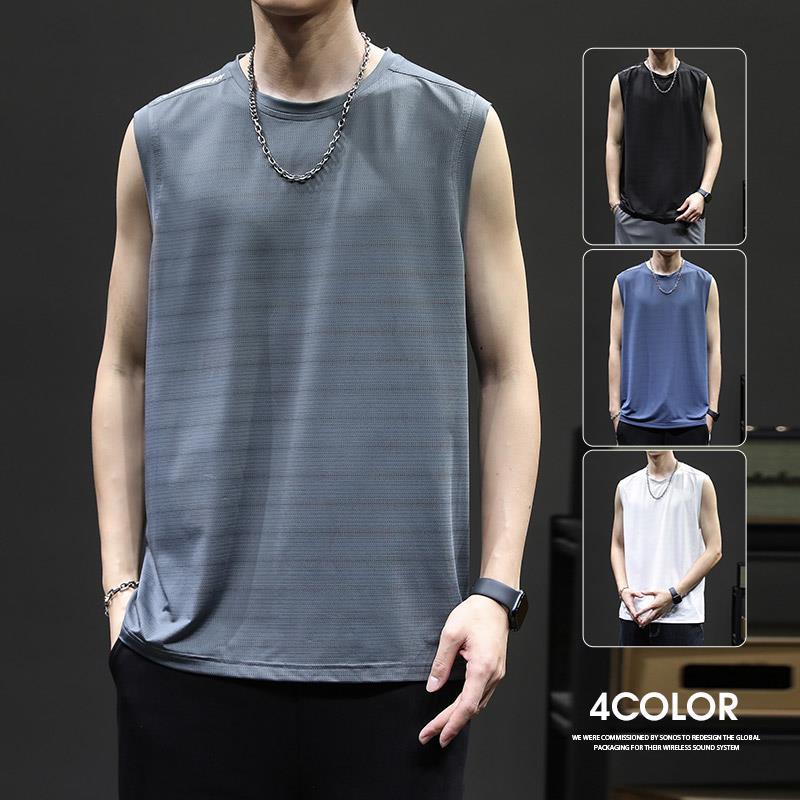 速乾性スポーツベストメンズフィットネスベスト屋外体力服アイスシルククールベースノースリーブシャツ通気性下着