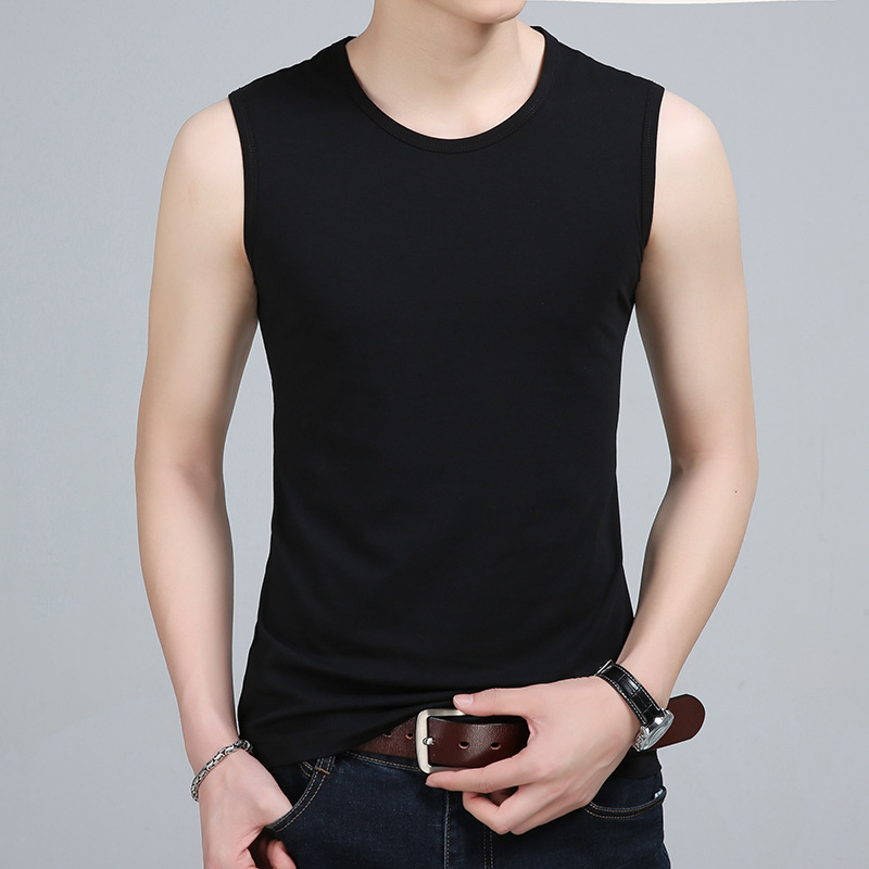 男性丸首モーダルチョッキ運動幅背ベストガードル純色男性ベスト卸売り