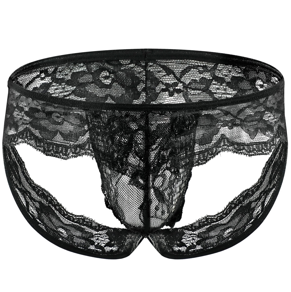 Tzy1152 pメンズセクシーランジェリーパンツローズレース前后穴开き半透明ボクサーパンツ