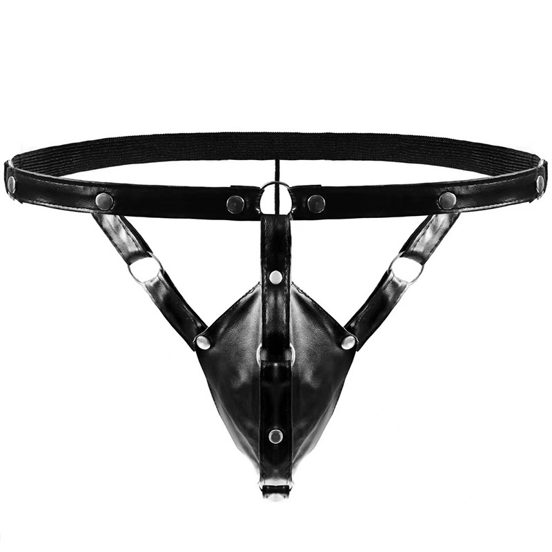 Tzy1021S男性用セクシーな下着の卸売りは皮の安全チェーンの漆の皮の三角のズボンをまねます-G104