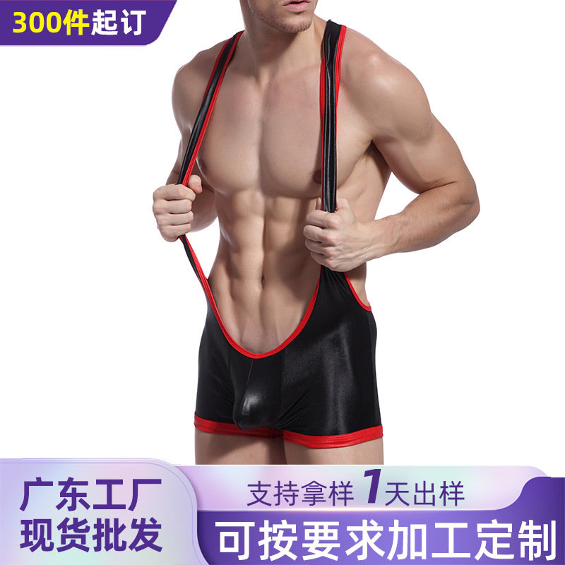 クロスボーダーの男性の下着のセクシーな漆の皮の趣味の下着の黒色の漆の皮の縛りの束の縛り式の連体の服のゲームのスーツ