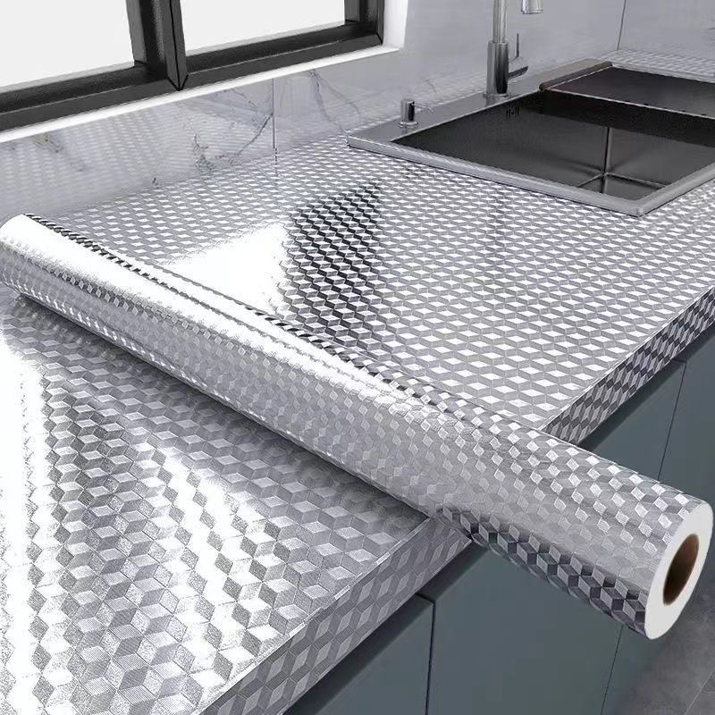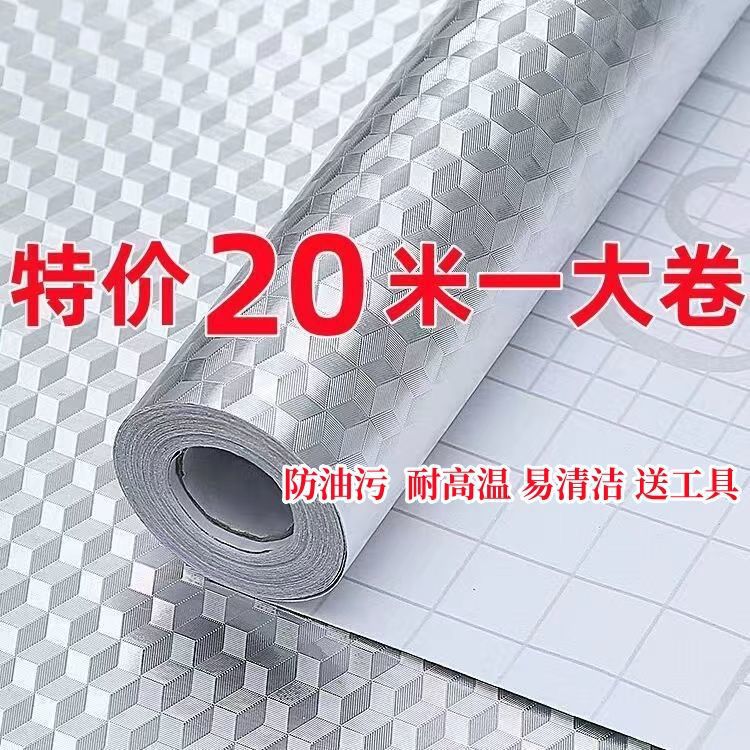 厚みのあるキッチン防水および耐油ステッカー高温耐性壁ステッカー防汚粘着壁紙カウンタートップキャビネットアルミ箔壁紙