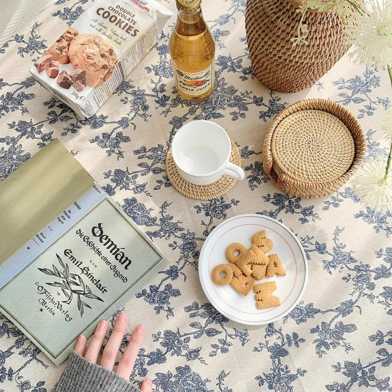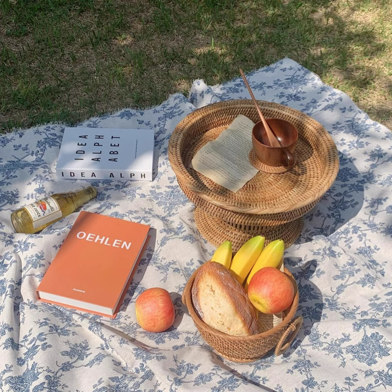 ドロップシッピングフレンチアウトドアキャンプピクニック布春のお出かけ公園お出かけブルー花柄インターネットセレブ写真小道具