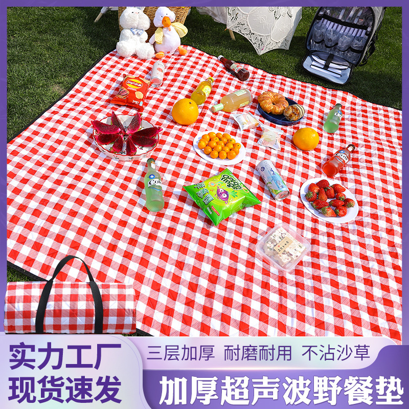 屋外ピクニックマットネット赤スポット黄格子厚手防湿キャンプビーチマットポータブル折りたたみ春キャンプ