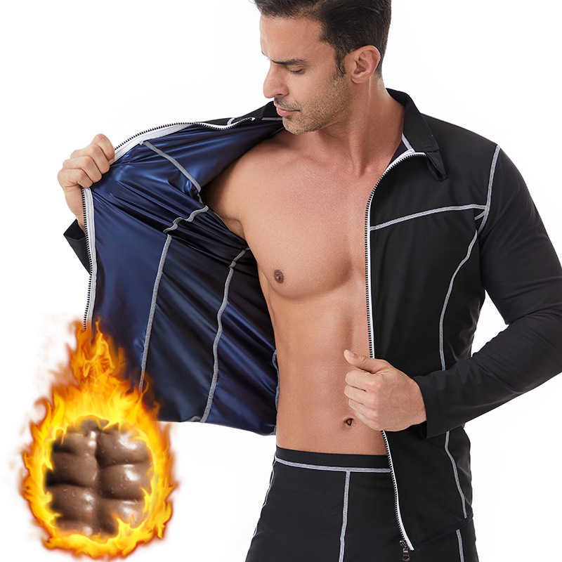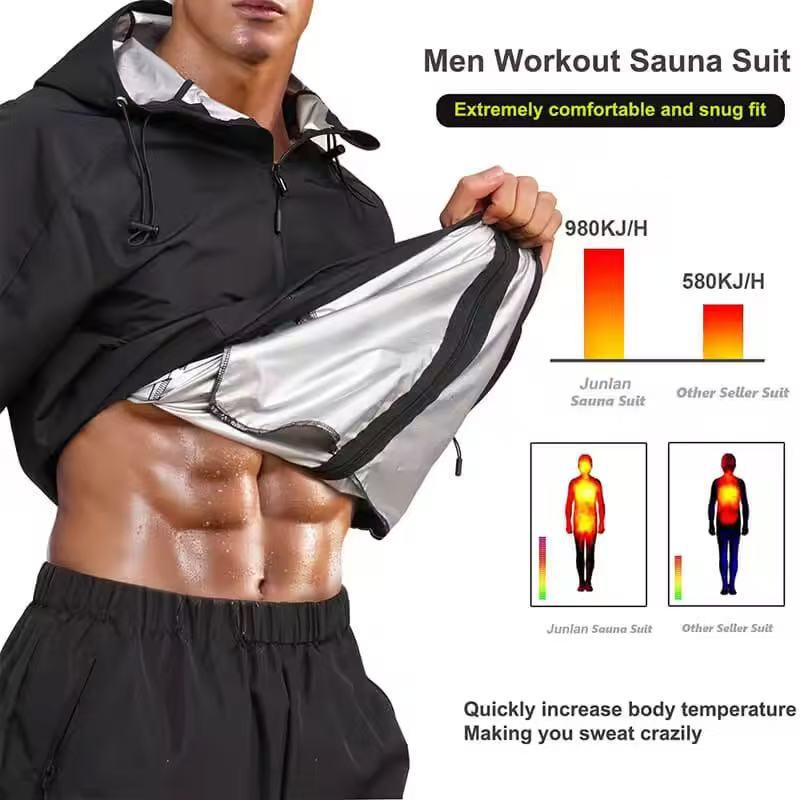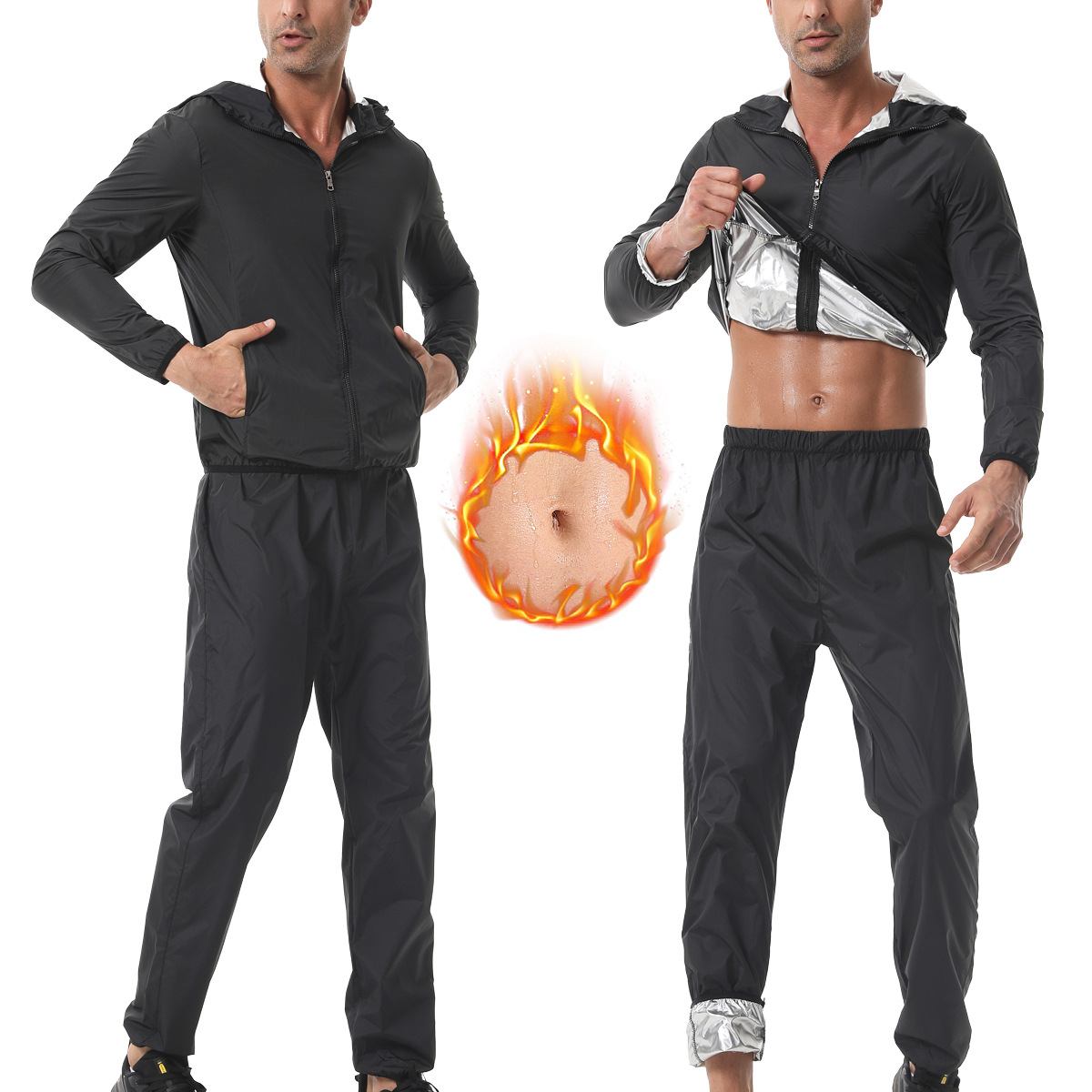 クロスボーダー男性用シルバーメッキスウェットスーツ長袖ヨーロッパとアメリカのランニングフィットネススーツ蒸し汗フード付き防風ジャケットサウナスーツ