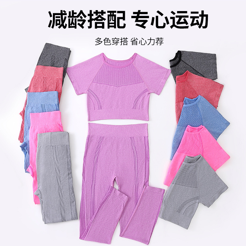 クロスボーダーヨーロッパとアメリカのニットスポーツヨガウェアスーツフィットネスランニング速乾性半袖ショーツツーピースボディシェイピングウェア