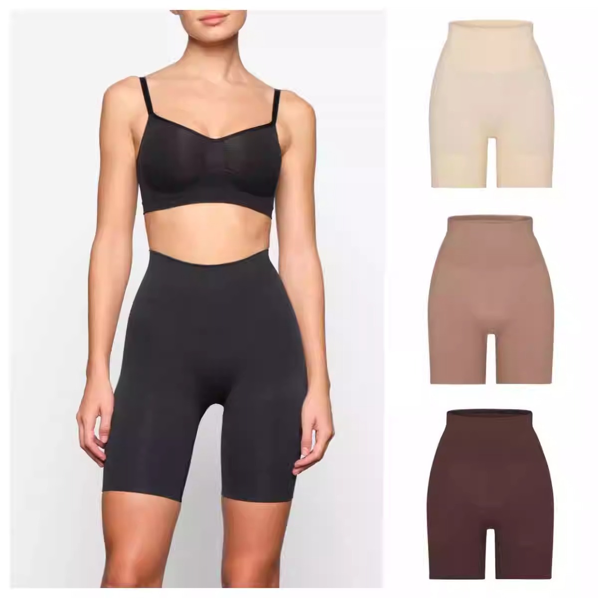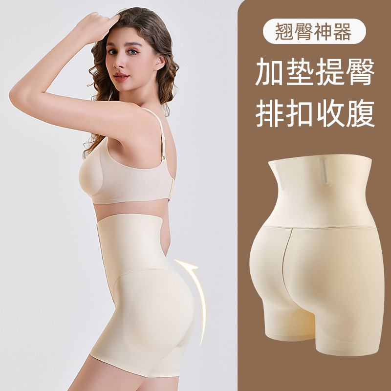 クロスボーダーハイウエストボタン付きお腹引き締めコルセット、ヒップアップ、露出防止パンツ、女性用アイスシルクボクサーパンツ