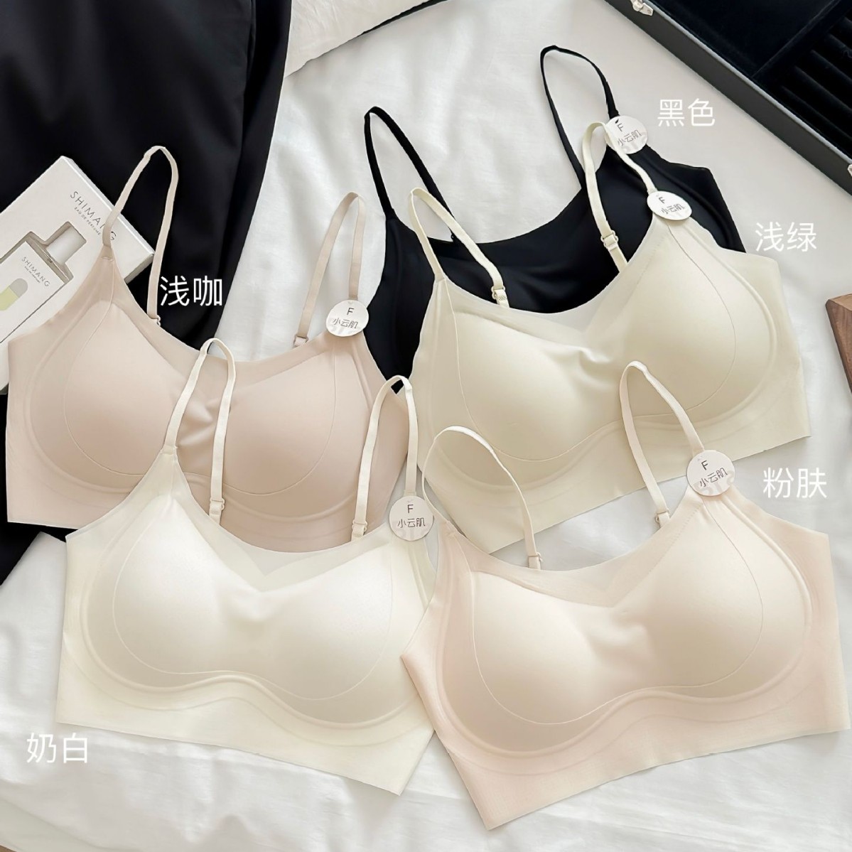 春夏のスモールクラウドスパゲッティストラップヌード感軽量プッシュアップ快適下着女性用固定カップ美しい背中シームレスブラジャーラップ胸