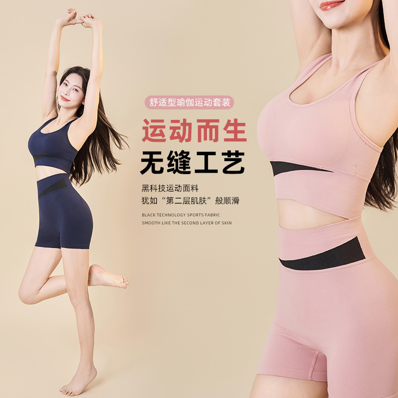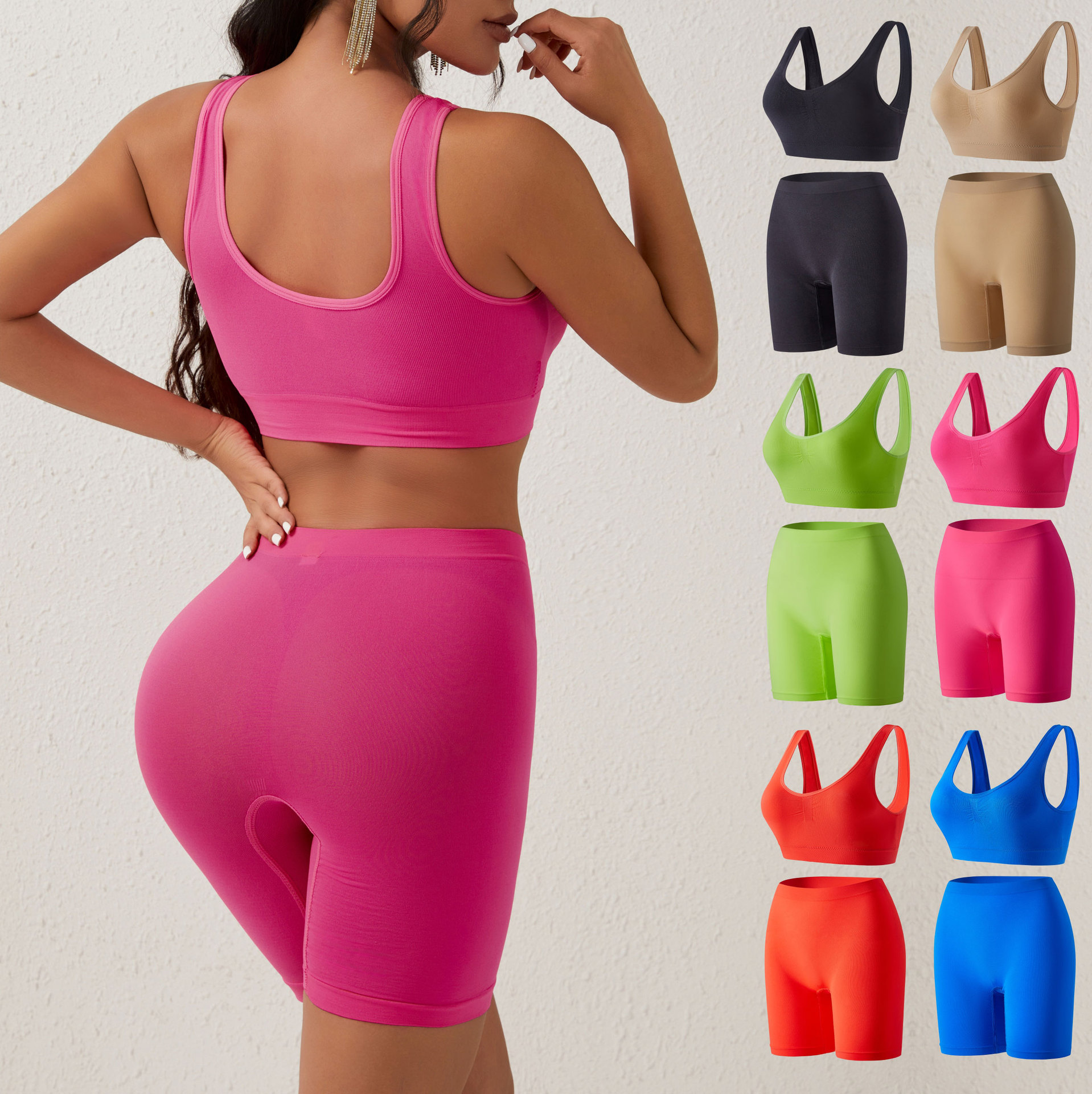 クロスボーダーシームレスセクシーベストブラスポーツショーツハイウエストおなか引き締めヒップアップランニングフィットネスブラ2点セット