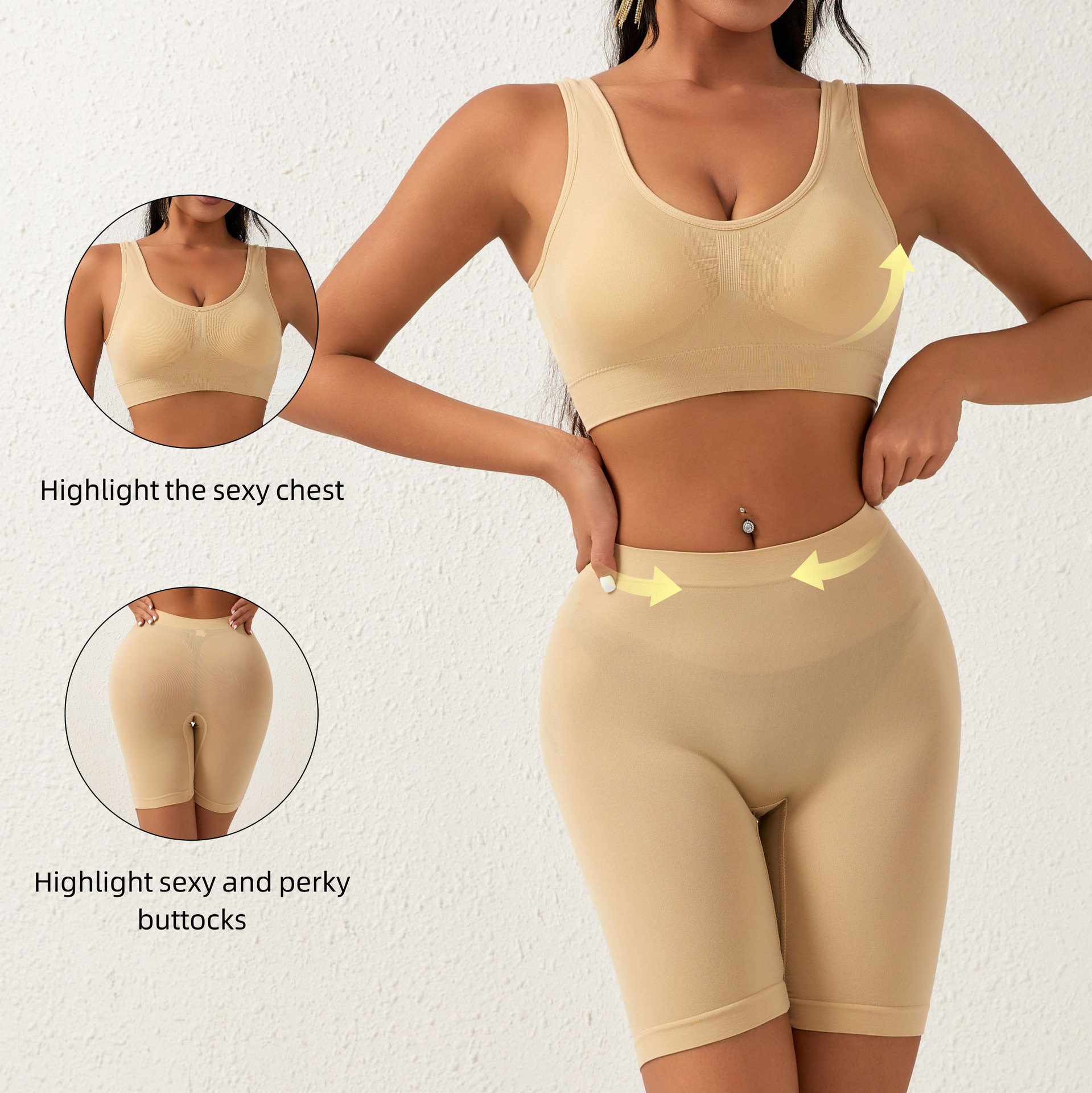 肌色のXiyinヨガベスト、女性用スポーツフィットネス下着、タイトフィットヒップアップシームレスヨガウェア、シームレスシェイピング