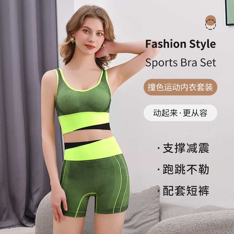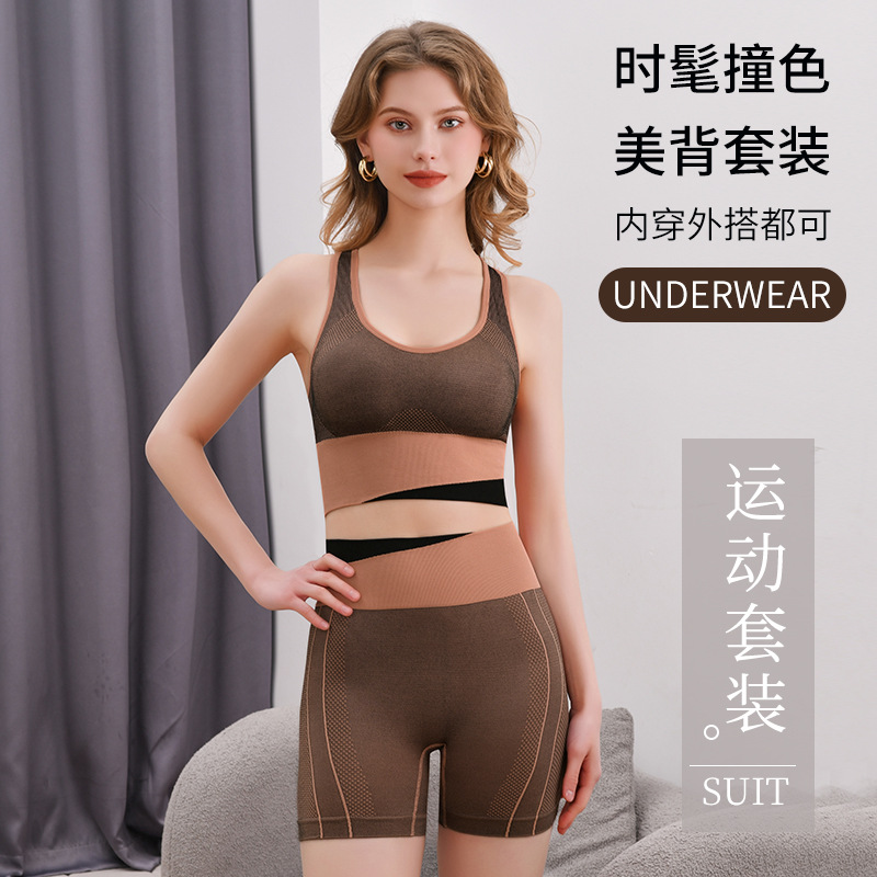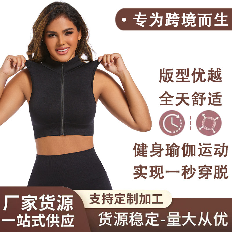 クロスボーダーシームレスライディングランニングベスト文ブラジャー前ファスナーフィットネス運動無痕提尻ヨガ服セット