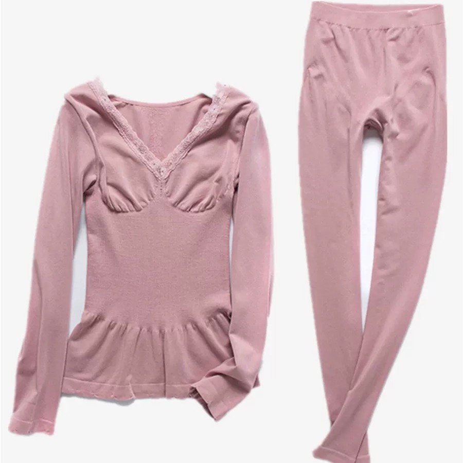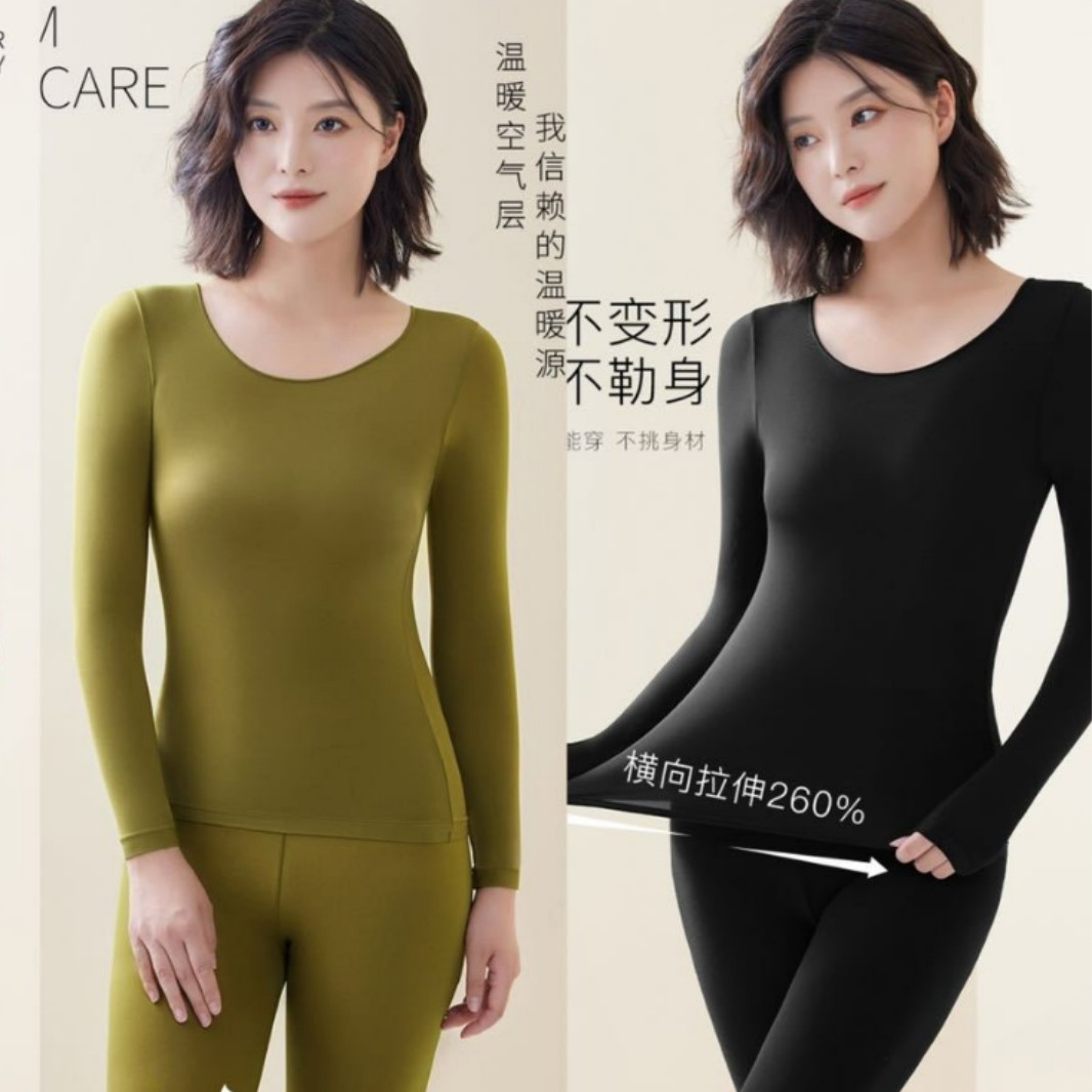 ヒアルロン酸保温下着女性超薄型シャツ美肌肌底服発熱秋衣秋衣秋ズボンセット秋冬