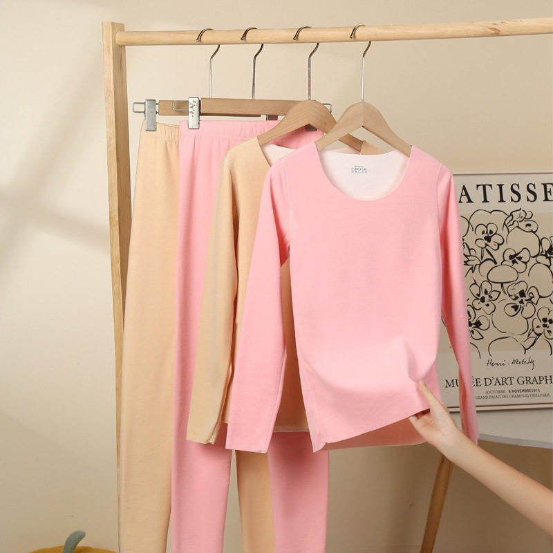 37度恒温超薄ヒアルロン酸エモリエントスーツ女性のシャツの外に秋衣秋ズボン保温下着セットを着ます。