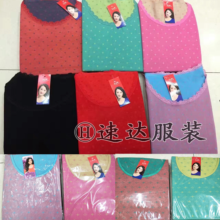 中厚シームレス保温下着女性スーツ秋衣秋ズボン女性修身低丸襟レースガードル美体下着