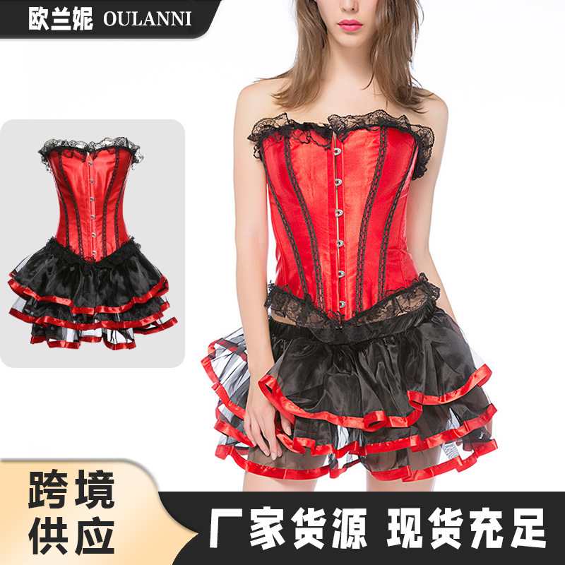 新製品二枚式スーツスカート欧米の胸レースの中袖宮廷のボディスーツの対外貿易の起爆金1708 + 7037