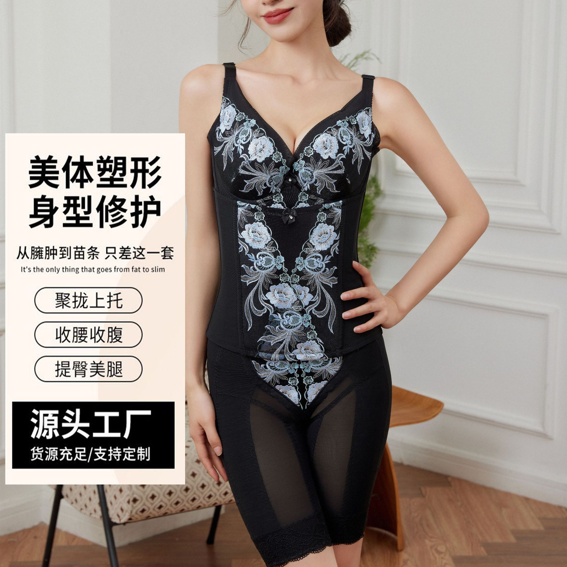 ヨーロッパとアメリカのクロスボーダー 2025 新しいセクシーなディープ V サスペンダー下着プッシュアップスチールリングロープボディシェイピングスプリットセット