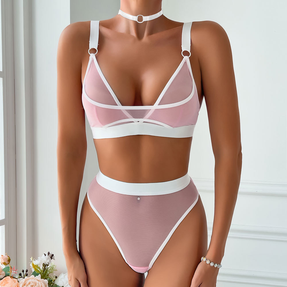 ヨーロッパとアメリカの国境を越えた新しいレースのブラジャーセット、セクシーなメッシュの透視誘惑下着、アンダーワイヤー付き