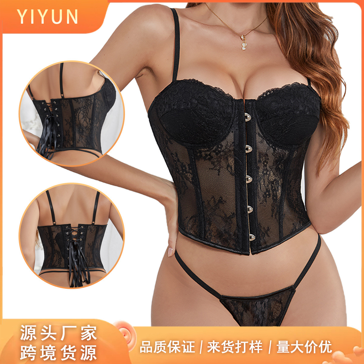 宮廷風レースレディースコルセット、輸出用フィッシュボーンブラ、スチールリング入りバストアップ&お腹シェイプアップスーツ、フィッシュボーンで形を整える