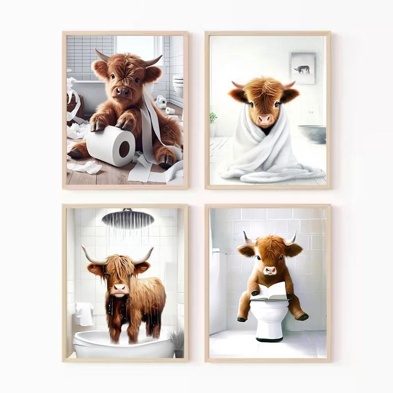 奇妙な農場動物乳牛ポスターユーモア奇想天外なスコットランド乳牛キャンバス画