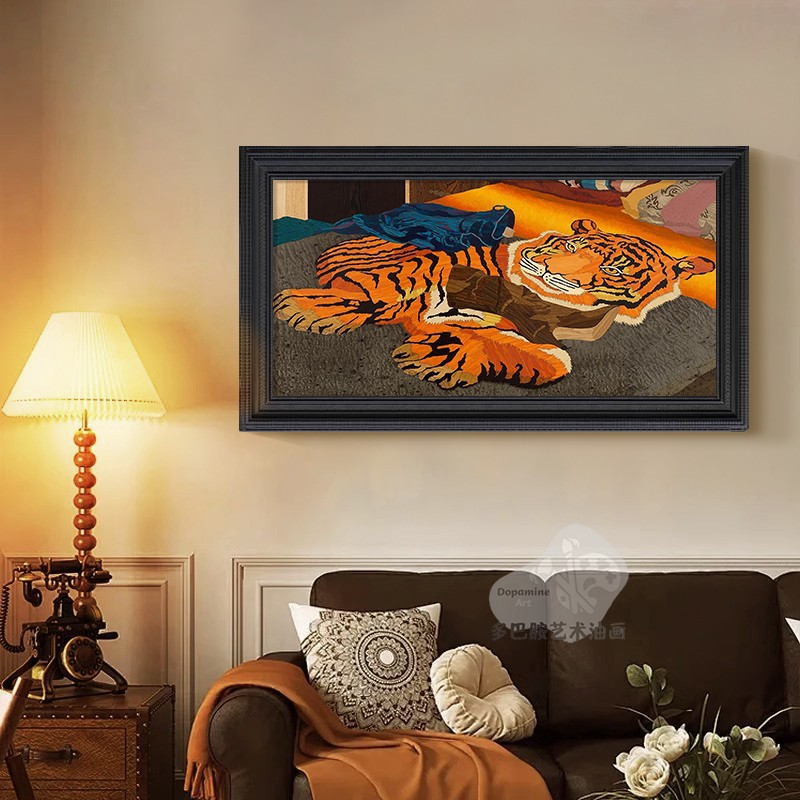 オリジナルデザイン絨毯虎手描き油絵中古風客間装飾画国潮小衆芸術玄関掛け絵