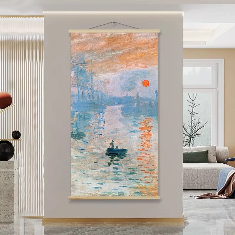 モネの日の出玄関装飾絵画世界有名な絵画フレームレス絵画吊り布ゴッホ星空廊下通路吊り絵画タペストリー