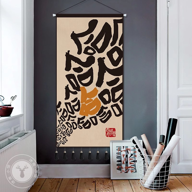 布製吊り絵中国風玄関装飾絵画背景絵画中国風縦型タペストリー遮蔽絵画茶室禅